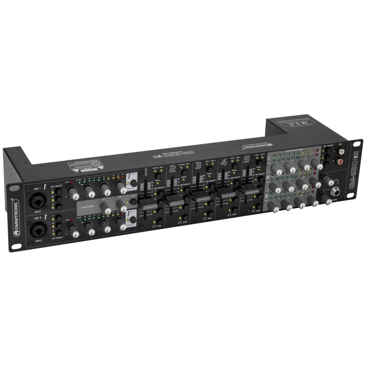 - 5 input channels with recessed gain controls on the rear panel, signal LED and smooth channel faders
