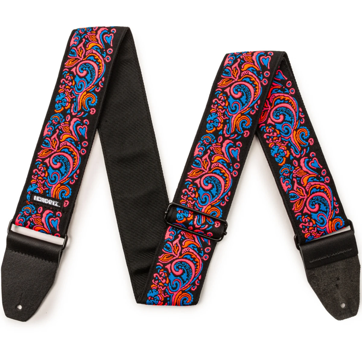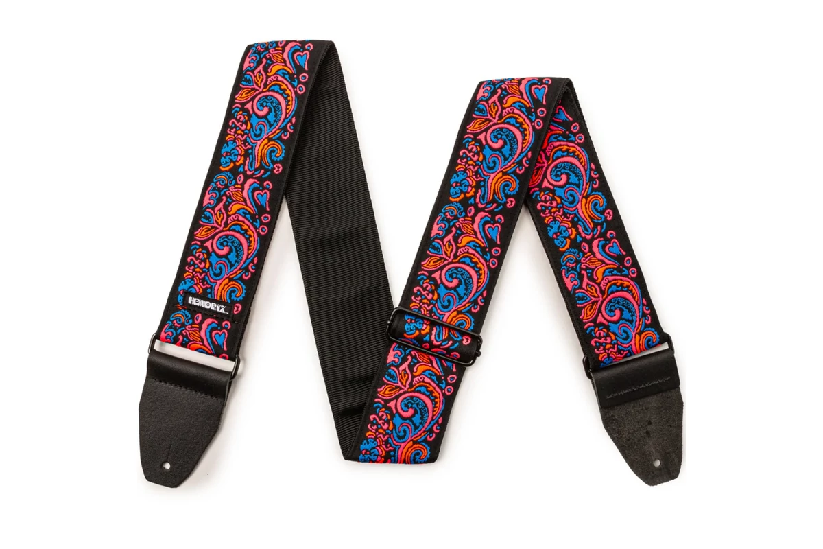 A Jimi Hendrix Blacklight Collection ezt a különleges korszakot idézi meg exkluzív, limitált kiadású gitárhevederekkel. A fekete fényre reagáló, jacquard-szövésű anyagból készült szíjak nemcsak praktikusak, hanem látványos kiegészítői is a színpadi megjelenésnek.
