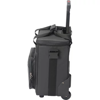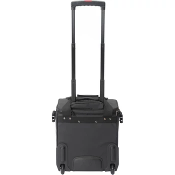 Kézipoggyász méretű vízálló lemezszállító táska, hordkerekekkel és hordfüllel.