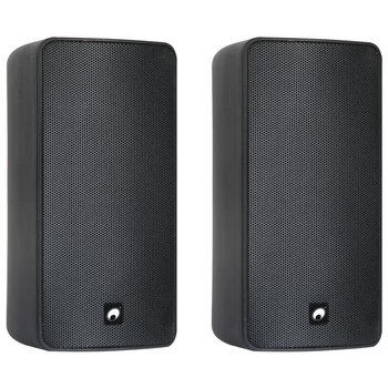 1 pár kültéri vízálló (IP54) fali hangszóró, 6" mélysugárzóval 1" tweeterrel, 100V, 20/40/80 W RMS, 110 dB Max SPL, 60-18000 Hz, konzollal, fekete színben.