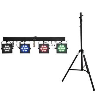 Bar with 4 powerful RGBAW/UV spots, QuickDMX, remote control and bag incl. steel stand