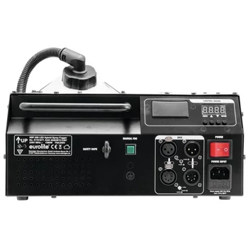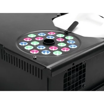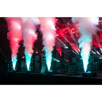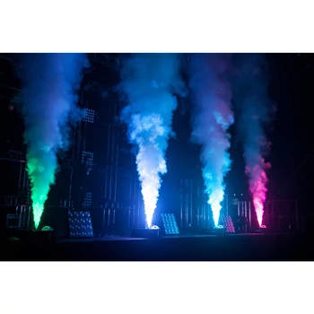 Hybrid füstgép, DMX interfésszel, függőleges, 5-7 m magas füstkibocsájtással, DMX512 vezérlés, távirányító, tabletes/okostelefonos: freeDMX-interfészes vezérlés Wi-Fi segítségével, strobe effekt, szín változtatás, LED szín funkciók