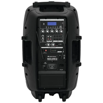 90 W-os hordozható hangfal, 2 mikrofonnal, audio lejátszó, Bluetooth, 12"-es mélysugárzó, 1"-es magassugárzó (akkumulátor nélkül).
