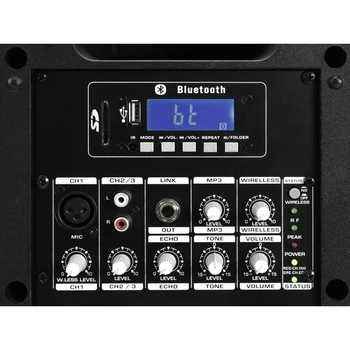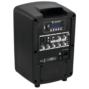 Hordozható akkumulátoros PA rendszer UHF vevőegységgel, média lejátszóval (USB, SDHC), Bluetooth-al, 40 W RMS, 12 óra működési idő (akku), 6.5"-es mélynyomó, 1" magassugárzó, tartozék akkumulátorral
