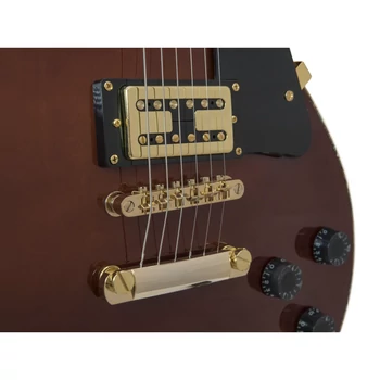 Les Paul formájú elektromos gitár, Honey (méz) színben, ragasztott nyakú konstrukció, hársfa testtel, juharfa nyakkal, rózsafa fogólappal, 22 bunddal, 2x humbucker hangszedővel, 2 hangerő és 2 tónus potméterrel, 3 állású kapcsolóval, ajándék puhatok