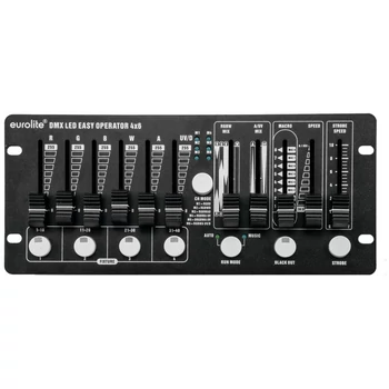 Kompakt 4-csatornás DMX vezérlő LED-es spotokhoz, RGBAW+UV vezérléshez.
