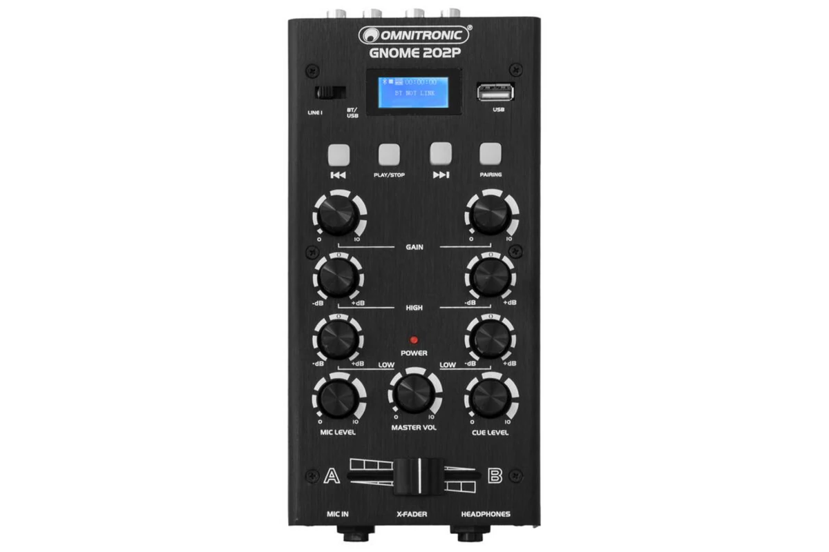 Egyszerű és könnyű DJ keverő. 2 sztereó csatorna csatornánkénti hangerőszabályzással (gain) és 2 sávos EQ-val. RCA csatlakozókkal. Integrált Bluetooth audio streaming okostelefonokhoz és táblagépekhez. 2,4 Ghz-es Bluetooth kapcsolat. Beépített MP3 lejátszó USB porttal és kék LCD kijelzővel. Állítható hangerővel rendelkező mikrofonbemenet 6,3 mm-es Jack csatlakozón keresztül. Állítható hangerővel rendelkező fejhallgató-kimenet 6,3 mm-es Jack csatlakozón keresztül a fader előtti hallgatáshoz (CUE). 2 master kimenet RCA csatlakozókkal. Precíz crossfader. Eloxált fémház, fekete színben.