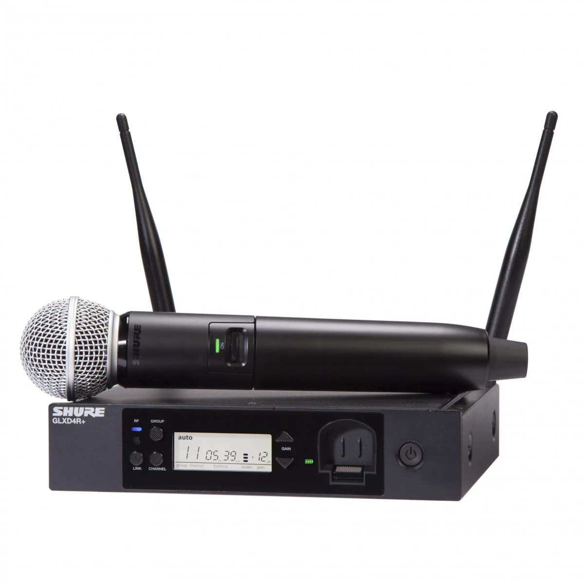 A rendszer tartalmaz egy GLXD4R+ rackbe szerelhető vevőt és egy GLXD2+/SM58 kézi adót, amely a legendás SM58 kapszulával van felszerelve – ez a mikrofon világszerte ismert természetes, telt és átható vokálhangzásáról. A Shure újratölthető lítiumion akkumulátora akár 12 órás folyamatos működést biztosít, a gyors töltés funkció pedig 15 perc alatt kb. 1,5 órányi üzemidőt ad.