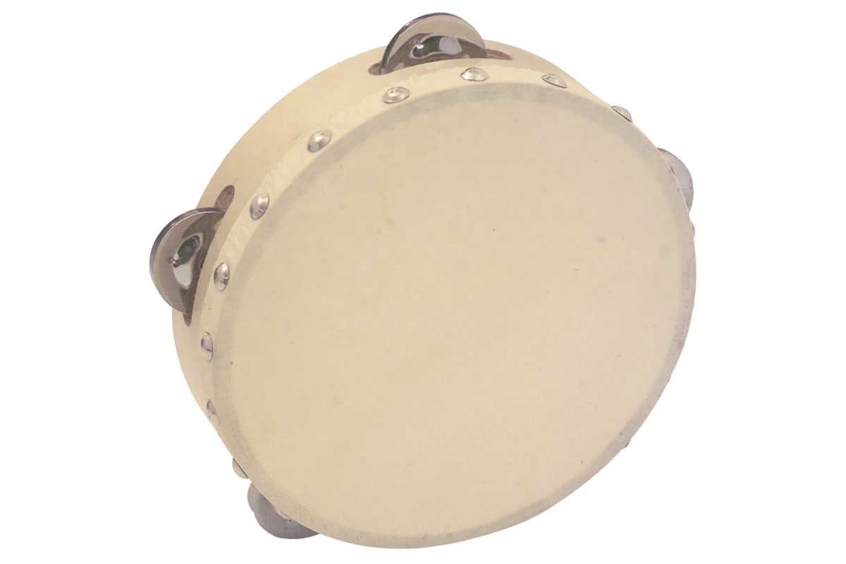 Csörgödob, szegecselt bőrrel, 4db csengővel, fából.